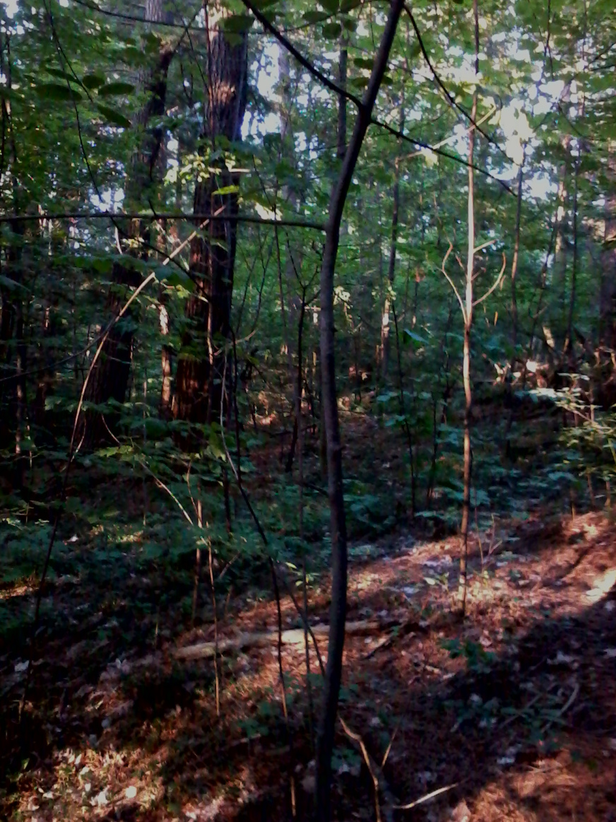East Woods: The escape and refuge on days when work finished too early. Long walks through the hemlock. The scent of old hemlock wood and needles and the tannic acid rising from the damp ground. The cool, fresh breezes… alone.