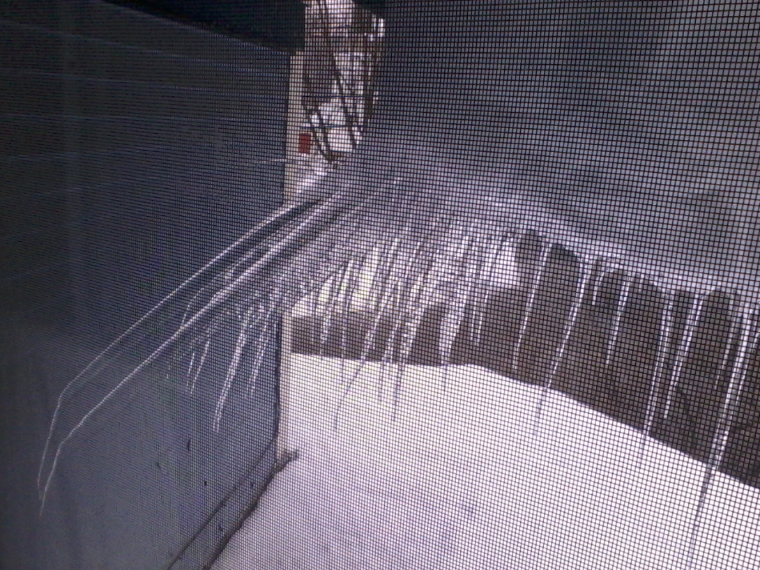 THE ICICILES hanging from the edge of the roof! It’s breath-taking! Astonishing! Amazing! It’s such a wonder to be able to lay down and just marvel at them as I drift off to sleep. (Something I won’t be doing much of in a very short while.) And I keep thinking: Gee, I’ve been seeing this all Winter whilst some-one else has been enjoying the warmth of… Imagine how it would have been had he actually been here all Winter? ’tis a laugh, indeed. Alas…
