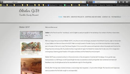 Fri.11.Oct: 4.58 I have a depression coming in. I’ve been up for over an hour. And this morning, when, at about 4.30, instead of peeing in a plastic bottle, I got up and went to the loo? BLOODY FUCKING BARKING! FUCKING USELESS DOGS! So, now I’m awake, just waiting until it’s time to go out of the house. I could go to Richford for smokes, or Enosburg for coffee, I could use both. I could bike or I could walk. Either way, I just look forward to getting out of the house and away from the dogs. Can’t move around here with them and nobody does shit to stop it accept little “No.” Fuck me. Really. – Time to catch up on yesterday, see about trying to post some art-work some-where for sale (I don’t have all that much with me), get something more done on the new book and hope with all that the sun comes up in a crystal clear sky so that the morning will be warm enough to take the chill out of the barn. I can run back there for some time… Too bad I haven’t figured how to heat it… yet. – 5.32 caught up with yesterday. Still waiting for the sun-rise. If this morning had been in June, the sun would be rising already and I’d be out in the barn-yay! But, I’ll be damned if I’m going to go out there in the cold! (4 deg. now but a high of 21!) Bad enough my stomach won’t stop the churning and growling and whining. It’s been doing that all morning! Some of it’s from hunger… the rest of it’s from just nerves (and the impending depression that I KNOW is coming!!!) Another reason I won’t go out in the dark and damp and cold… my hands are SO BLOODY FUCKING SORE!!! The joints are actually PAINFUL this morning… particularly the pinkies on BOTH hands. I don’t understand why. The ulnar damage has killed the pinky and ring fingers on the left. But now the right hand is going too. I noticed it starting the other day when I was hammering stakes to make the fences. Just using a sledge, hurt. Oh well… HEART NEXT PLEASE! Annnnndddd… we’re owdduh heeyuh. – So this day went quite along: I locked me in the barn (which is now to become “l’Atelier QCVT”) and worked on a shingle sign for what might become a little “New England business”. It was nice being in there, off in the back yard, in the old barn, in the area that I’d reclaimed, brought back and cleaned up. I put a LOT into there and now, Bob and Lyle are sweet and kind by letting me use the space. – Must to add here, since, for me in my general “depression” (and there really is a constant general depression of late) I managed to put in one more 10z with quite impressive out-come, considering there’d been TWO yesterday. Just sayin’ for the record. SHIT! I’m impressed with me, with the out-come and well, that I even have the capacity! – atelierscreenshot Tonight, when I got in, I MADE A WEB-SITE FOR “l’ATELIER QCVT”! I’m going to give this a shot! What the fuck? Why the hell not? If nothing else, it might make for a good “book”… coming to VT and starting a little business in an old barn that I cleaned out. – ANYway… – We had a fire tonight. We kept it going, kept it hot enough to be comfy. Having the cut fire wood close by made it easier but tonight we got through just about EVERY piece of wood that has nails and shit in it! There’s a bit of cleaning to be done behind the barn again, but the old, dangerous wood is gone! I’m so happy! – Lyle got paffed again tonight and Bob started talking about Daisy and Lyle got to crying. Poor guy. It’s been only about 2,5 years since his Mum died. Still a rather raw wound. But then he, Lyle got to saying (again) how much Randy and I have turned the house back into a “home”, how much we’ve become “family” and how he doesn’t want anything to change. It made me feel “good”… it makes me feel “uncomfortable”. I’m here now only because I want to do all the things that I know Bob and Lyle want to have done round the house but can’t do themselves and then? I want to go HOME!!! I need to go HOME!!! and that’s the top thought on my mind every single day. I’m here, right here, so close and before anything happens to take this away, I want to, need to and will… go HOME! – It wasn’t a late night. It was just a heavy night, so to speak, of maybe 4 or 5 hours of them drinking and me grabbing the odd drink. It’s come to the point where I’m the “sober” one in the house… IMAGINE THAT SHIT! But the BDM’s are always close by….