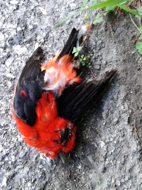 I DID make the bike trip into St.A. today. I left the house round about 11.00 when the rains passed and the météo indicate that all the rains had gone for the day. The trip was… well… not something I wanted to do, but it wasn’t too bad today. There were “patches” of sun that came through the clouds, and when it did, it was miserably hot! But for the most part, it was over-cast and it kept things a bit on the “cooler” side. – At the CU, Becky completely ignored me. I suppose she’s still miffed about the last visit and that was all for the best anyway because I was in a state of mind to tell her exactly what I was thinking… and it wasn’t “kind”. I thought about it on the ride over: I don’t give a shit about what people think of me any longer. And if I’ve something to tell them, then I’ll say it. No sense keeping anything in any longer. I’m merely counting my time. – I took out all but about 5$ form the account again and the total was 199,03… the ,03 was the “dividend”. I was going to hand it to the manageresse, but instead, I simply left it on a counter… figuring they’ll find it and have to figure where it came from and what to do with it. I mean… it’s stealing if they don’t put it some-where… and I could actually report that… and maybe mention it on the SocMed! Well, what-ever, it was there for them to handle. And I walked out. In the parking lot, I put my “funds” together. I’d purposely asked for 5’s to put into the “file” to fill it… to capacity where I can’t even close the case any longer. One 50 and the rest of the 5s. The “file” is now at 250! Hey! What a way to “save”… and carry it with me. – Then… on to Walmarde to look for a “rain suit” and what do you know? I found one! Just under 20$! OK. So I don’t want to spend now, especially on something like that. But I do need it and it was 19,97! (I got my bloody 3-cents back in change!) But I’m rather pleased that I didn’t have to spend 30$ and no, I didn’t want to spend even the 20, but… I have a rain suit! And, if it rains during the week? I can STILL pedal my arse along the roads! (It’s quite heavy though… and adds much weight to the back-pack… but WTF? It’s not a “luxury” item at this juncture.) – Next? Off to Hannaford’s for the basics… and I do mean “basics”. Coffee, PopTarts, Ramen and a sports drink. BFD! And TWO packs of beef franks! I figure, I’ll need the food! I won’t be able to bring with, but over the next couple of days, I’ll load-up on the calories and such. – AND… the next stop was… PFK/KFC!!!!! The kid at the counter was the nicest and most polite! I had the 3-pc “meal” with slaw and mac’n’cheese and a Mt.Dew. UNDER the usual 10$! Hey, hey! I’m OK! I sat, ate calmly. It was only just past 14.00 and I was in NO rush to get to the house! – Dinner over and on the road again and I took my sweet-arse time! I figured it took me about 2 hours to get “there” at least and it would take me AT LEAST 2 hours to get back… at least… I didn’t rush. – On the Hanna Rd. I stopped to take a photo of a beautiful red finch… DEAD! SMACKED BY A CAR! FUCK! THAT PISSED ME OFF ROYALLY! But it added to the “pissed off” that I still was over having been honked at on the Machia Rd by some in-bred-fuk-tard in a red pick-up! But this poor little red bird just REALLY put me over the edge! The photo was for fessebook… it did get posted tonight! – Then… THEN.. as if things weren’t bad enough with the honking and the bird… some little dickless wonder shit from town here comes up behind me on the Hanna Rd. as I’m coming into town, he’s on a 4-wheeler and HE HONKS at me! If I had a gun at the time! – WELL!!! As it turned out… I arrived just in time to see the truck and the little trailer LOADED WITH THE SCRAP METAL from the barn and B. and L. out there… lightly carrying little bits to add. SHIT! THE TILLER, THE ROLLER… THE WOOD STOVE! THE POT-BELLY STOVE! ON THE TRAILER! But I HAD… HAD… H.A.D. to guffaw to myself as I sat on the swing looking: