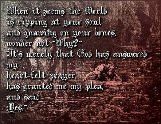 Tue.3.Jun: 5.56 DELUGE! DOWN-POUR! Intermittent. But HEAVY at moments! RAIN! And all I can think of is “Next Week!” Rain means not taking the back roads. Rain means mud kicking up on my back and legs. Rain means Hell and disastre trying to get to work… let alone, trying to get from work. Rain. And I already know that there’s a 60% chance… ALL WEEK next, of this… EVERY DAY! And I know what a 60% chance means… it means standing on Sheltus under the trees, under plastic, waiting. And I don’t have the luxury of time to wait. My guts are already churning and knotting at the prospect. But, there’s nothing I can do about it now… and there will nothing I can do about it then. No sense in getting worked-up about it this morning… or any morning. Just let the days do what they will. – Last night I browsed available cars. I just don’t have the money. I just don’t. Just don’t. Oh well… At least I won’t be able to mow lawns today. I’ll have to find some other way to steer clear of the “house” for the day. I need to make a wash. I don’t know that I should… now… this morning. I don’t know WHY I should fee that I shouldn’t. But… That’s the way the house is… That’s the way it all is. And as usual: My consideration? A royal fuck! – On with… what-ever. – 9.50 I’ve been back to sleep more often in the past 4 hours! I’m EXHAUSTED! Physically. – But the rain’s stopped. – 10.20 THE WORLD AND THIS LAP-TOP AND THE WORLD… IS A HATEFUL SPITEFUL MURDEROUSLY DISGUSTING PLACE! AND I WISH THERE WAS A TERM, WORD OR EXPRESSION WORSE THAN SIMPLY “FUCK” TO EXPRESS WHAT I FEEL ABOUT IT… ALL OF IT… AND ALL IN IT!!!! RIGHT NOW! – 12.06 And yet another day is passing quickly and I’ve done nothing.. nothing at all, save browse across the Internet all morning and not giving a shit about it. Just not giving a shit about much of anything today. It’s rather hot, and terribly humid and me? I’m rather hungry and there’s nothing here to eat save peanut-butter and 2 rolls and some Ramen. Weather says the storms have passe until about 17.00 this evening or so. Me? Je m’en câlisse. Makes no difference to me one way or the other. “Things to do”? I could probably (no, I could) find MANY “things to do” and more “things that need to be done”… but… I’m looking at my jeans going thread-bare and… well… I don’t see the world queuing up to kiss my arse so… until that happens… nope. Just about lounging today. I’m off for a third smoke du jour. –
