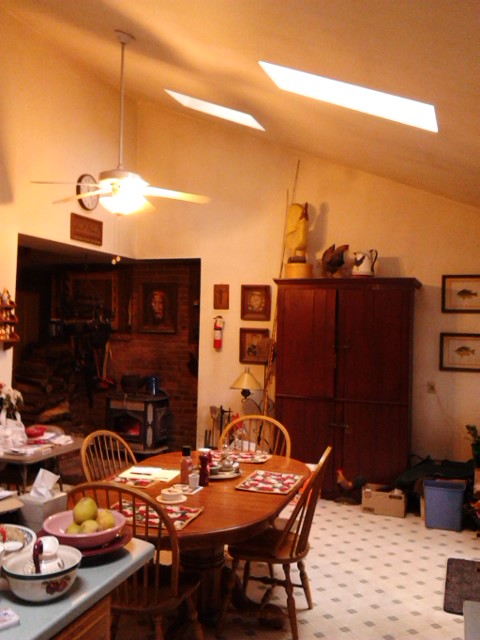 Thu.24.Dec: 9.43 At 00.56 this morning, the fucking idiot in front of the store, radio blaring!!! again. Fucktards. – Anyway, slept until about 8.45! NOT happy about that especially since B. is off from work and this morning? Attacking the little back room down-stairs. So my morning commenced with lifting furniture to bring down from the “Media Room”. Oh well… Yes, I’m in a bit of pain. No, it won’t bug me because I don’t care. – Stepped out for a morning smoke: WARM! 15°/60° AT 9.00 IN THE MORNING? WTF? But tonight the temps are supposed to plummet so I’ll say nothing. It was again, 23° in the room last night so… – And so this is Xmas eve…. BFD. – 22.46 There are pellets for the pit, and a stack of wood for the house. The dishes over at the house are done. – When I’d gotten to Jacquie this morning at about 11.00, she’d put about 5 tourtieres together but hadn’t baked any. She even made one for here, but I’ll have to bake it… when I get around to it. – Well, she left, I came back and got to the publicity stuff for the book which took me until about 16.00 when I went back to Hallie (when I did the wood in the kitchen and washed the top of the stove and the pots on it). By 18.00 Hallie had dinner and I came back to the pit just as they were having pizza. I was offered a slice but declined and came to the room to sweep. It needs Hoovering but… – At about 19.30 I went back to the house to fry 4 franks, had 2 with rolls and played out-side with Hallie for a while. The night is still warm (8°) the sky is crystal clear and the moon-light is magnificent! – Back at the pit, I snuck into the room and got back on-line for a bit, chatting with David. OH! I received his card at the PO today! (I have slight trepidations about him though… I do tend to think he’s running this into something that I have neither time nor patience for. But I hope I’m wrong.) It as a delight to receive. – Back at the pit then, did a bit more publicity and chatted with David and just went for the last smoke of the day. – Lyle came out to the back porch and had the fucking audacity to say “I guess Jacquie didn’t send over a meat pie.” I told him that it had to be baked and asked when they would be having it. His reply; I was going to have a slice now. Yep… same shit… “ME!” that’s all these people know. Oh well, when I get round to it and I won’t be in any particular rush. – The Aleve are kicking in so it’s time for lights out. – I hope I wake with full energy tomorrow morning. I’d LIKE to get that kitchen ceiling washed. –