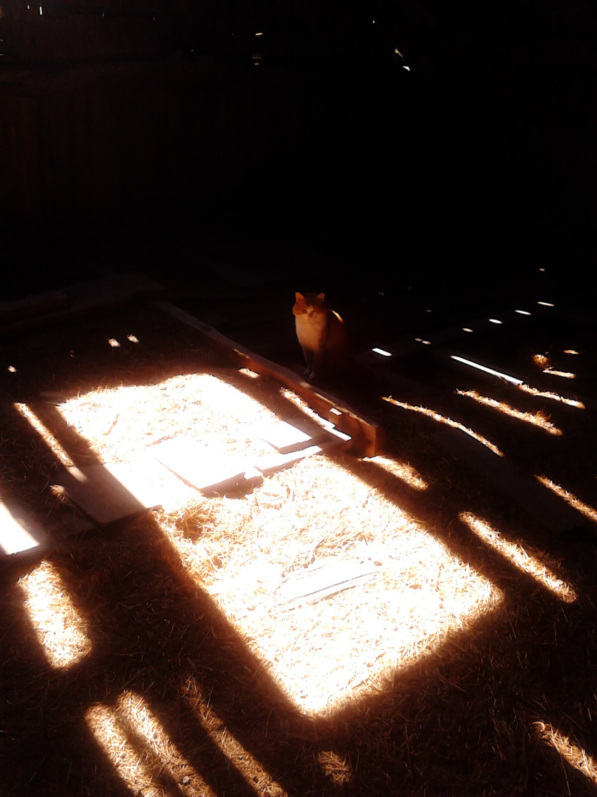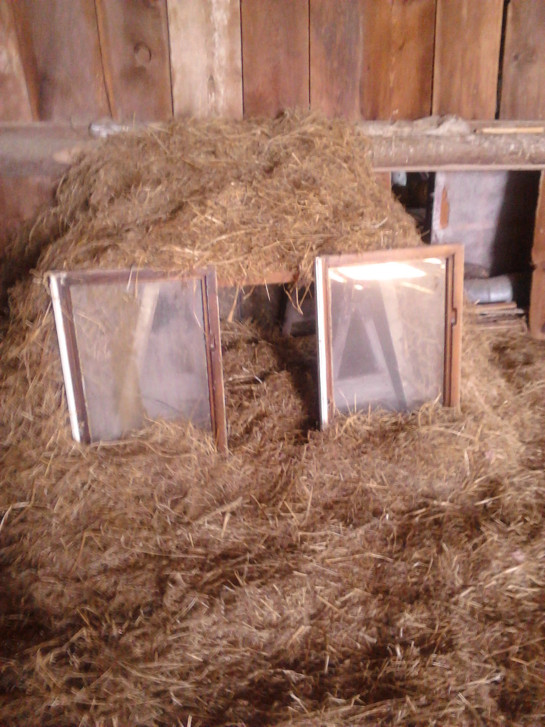 Sat.20.May: 11.15 For the life of me, I don’t know why I woke at 7.20. More? I was out of bed 10 minutes later and at the day. Sunny. Chilly too. But, attempting to sort through the shirts found yesterday and packing them away, found the other T-shirts I rather knew I had. They got washed, things got packed and re-packed… again. My fucking existence, all in boxes. Got my notes, scraps and chequing done (after having to get smokes yesterday). FS down to about 70. I work around here for shit. – Lawn needs mowing. Not today. I’ll need the escape come tomorrow. Fuck it. – Andrew said he’d be by at some point today. I can’t mow by the green-house because of the shit all round it. I refuse to clean-up their bull-shit. – Other-wise, just trying to warm me up. It’s all of about 10° today. Odd… I actually saw and felt the cold coming from the West last night at final smoke. – OK. “Lunch time”. Not at all hungry but… must eat whilst there’s peace. it won’t last. – 24.55 In bed. Showered. Scoured after several hours in the barn today. Kitty got a little house! And just in time… Météo forecast was 9°tonight. It’s already down to 4°!~ I took the 2 wood saw-horses and 3 old windows and an old screen, stacked straw against the inner wall, held by the screen, for the back. Leaned windows against the saw-horses and one on top. Piled straw over the whole thing. Added 2 smaller windows at the front. Piled straw inside. I left the bed where it was though. It should give a bit more protection from the cold. The straw should insulate. I can only hope with all my heart. Especially now since today, when I brought food, KITTY MEOWED AND LET ME RUB AND PET HER! AND AS I BUILT THE HOUSE, SHE LAID THERE IN THE SUN!!! SHE DID’T RUN AWAY FROM ME!!! – And that’s my news for today. – Oh, and I’m completely packed now, including all the shirts I got from re-doing the plastic drawers. Now… to get a place to go to! – All laundry now done. The dryer just stopped. – Heater running. The heat is up too. Chilly draft because the fan is in the window. I’m not bothering to take it out. It’s not really cold in here. Just the draft. But hopefully the heater will give warmth. And hopefully Kitty will be warm enough in the little “house”.