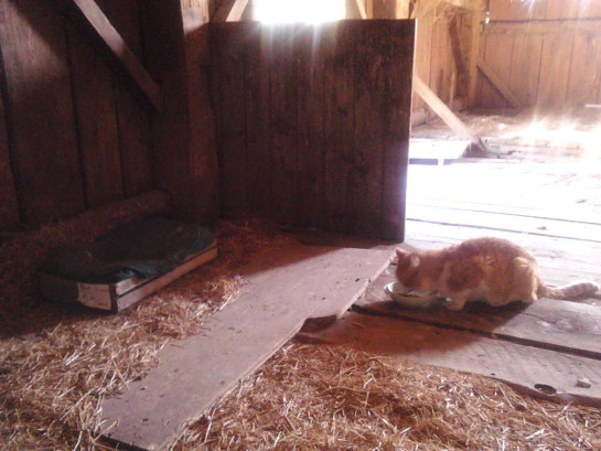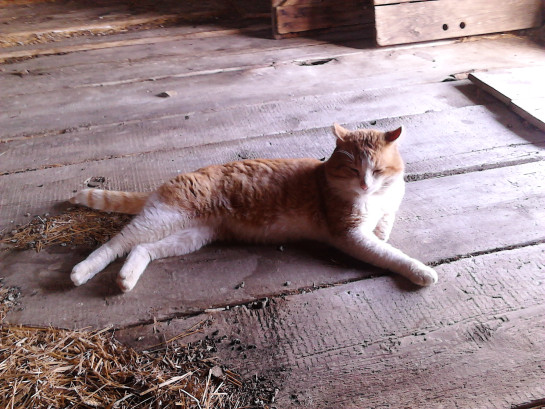 Tue.23.May: 23.20 Kitty is a little GUY! with a rather large and extremely well-protected and well-insulated place to rest in the barn. It got modified today. A sheet of aluminium instead of the top window. The 2 front windows are closer together. More stray inside for insulation on the floor. Double window on the North side. A large 4-over-4 window diagonally over the front. A bale of straw to block Southern breezes. A LOT of straw on top! Even more on the North side! The large window on the front blocks West wind. And LOTS of straw all over and around. it’s truly VERY well protected and insulated now. And today, the ultimate: He let me pet him, and rolled over on his back. He even followed me a bit as I walked about in the barn! And he got more that his fill of food. I noticed this evening, he didn’t finish his tuna! As soon as I’m able, I’m going to cover the window on the West wall with some heavy plastic… translucent, to let in light but not wind and rain (and pigeons). I’ll have to ponder the other large openings, considering ventilation for Summer and Winter protection. But for now, he’s got quite the protection from the elements, even as it is. I can rest knowing he’s got a place to call his own “home”. – I woke on that whilst Mme. went to 172 for most of the day. Dave went over with his DR and cut some of the lawn. Of course he didn’t do the entire lot. God forbid anybody here should do a proper job. And he says it needs proper mowing and that will be slow because the grass he cut is still high. “Vermont Fashion”… half-assed and horse-shit. But he did get the mowers here running. Needs to get new belts (AGAIN!) for the ride-on. And JUST when I had one very narrow strip of grass left to mow this evening at 5199… the fucking pull-string snapped! On the White mower! Fortunately, I finished with the self-propelled. THE ENTIRE LAWN IS DONE! THAT’S TWCE FOR THE MONTH OF MAY. 100$ DUE… FOR 5199. If we get the new cord and weather permits, I’ll give 172 a buzz. 45$ more there… or 40 at the very least. Dog care and house-work covered my 420$ monthly “rent”. Lawn-mowing is extra. – The postal “tubes” arrived today too. This morning, I re-packed art-work and paper and boxed 2 rods. 5 “tubes” remain. Rods on the week-end! – The fucking canoe is on the table in the yard with the new “For Sale” sign. THREE fucking times I’ve moved it, alone. Figuring I could sell it at 700, keep 100, give her 600 and see what, if anything, she gives me… “for my efforts”. A sale on this week-end would be great… BEFORE she get back from work. BUT IF SHE SELLS IT AND TRIES TO TOSS ME 100, I’M GOING TO TELL HER OF THE MOVING AND LISTING. No matter how, I expect nothing less than 200 out of the boat. – Of extra note: her Andrew cleaned between the trellises in the garden this evening and yes… tossed fucking weeds on the very lawn I mowed today! They’re parasites! – Or, as thought today: SYPHILITIC PARASITESD! And this Andrew shit-bag is from Chicago! (As Adrian said in his message of today “What makes them move to Vermont?” It is intriguing: If they’re not born here they find their way here. Mecca of morons. I truly need to get out and away. To die here would be Life’s penultimate insult.) – Almost out of smokes. Rollies tomorrow. Mme. enquired yesterday. I told her I am down to a pack. Let’s see her think nothing of it. – 24.22 Time to wrap this day up and shit shit shit down.