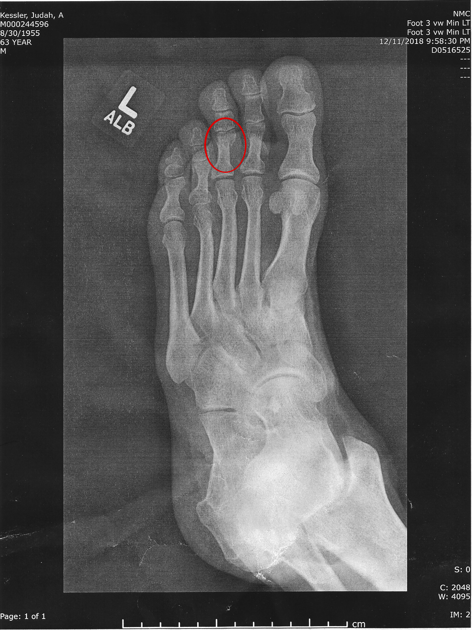 24.00 I was out the door and on the road at 21.05... I was back in the hole by 23.15! Yep... ONE TOE, BROKEN, BUT THE BONE CAME THROUGH THE SKIN AND IS “OVER-LAPPING” THE UPPER PART! QUITE THE BREAK! THE “CURE”? TAPE, ACE BANDAGE, SPECIAL VELCRO SHOE. PAIN MEDS? “CONTINUE NAPROXEN, ADD TYLENOL IF NEEDED.” SENT PHOTOS OF E.R. AND THE X-RAY AND THE SHOE TO HER LADY-SHIT. (HLS) REPLY? “Glad to know you are back (smiley face)” WHAT AN ABSOLUTE FUKTARD, THAT ONE.