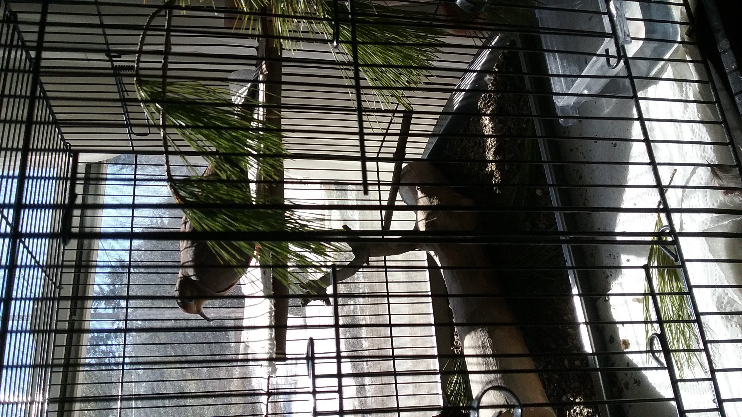 Mon.22.Mar: 6.51 Up, dressed, been out in the “crisp” morning air for a half-smoke, under-things in the basin on the soak and... feeling like right SHIT!!! At 6.00 this morning, I half-woke to the sound of... YONAH! accompanied by the “sounds of thunder”. Shitboi was “on the move” and making it's presence in Creation known. OK. So I read that mourning doves need 10 hours of “rest/sleep” and yes, by 6.00 this morning it had been roughly 11 hours since dear Yonah had “curtain call” last night. BUT... BANGING AT 6.00? Well, let's just say that I'm planning a quick run into town this morning, should the truck be warmed enough with the temperatures of the forecast and should the opportunity present, there's to be a “chat in the meats aisle”. I'm fucking fed-up with this shit. Fine, IF the moron in-breed DOES leave by month's end, it's only another 10 days, but I've just had more than I care to bother with/about. This nonsense about “Sex can be noisy” is just so much bull-shit! And I'm feeling horrid this morning. Light-headed, painful chest, generally run-down... in spite of having gotten a night's sleep. - 6.58 “The call”... Yonah is up and ready to rock'n'roll. My Life's Delight is up with me. WHAT A LOVE! - 7.55 AND... Yonah's pool has been cleaned and re-filled. Fresh water in the dish. Her “bird songs” are playing and ... AND... I notice, of late, that when I go into the room and over to her, she comes closer to me! She still won't come near my hand when I put it into the cage, but she gravitates to me other-wise. And she doesn't mind when I go in to clean the pool or her “house”. Still, I wonder what she'll do when she's out-side. Will I EVER see her again? Time will tell. - And I've had a full smoke on the front porch. Margaret came by, off the Hill, and gave a wave. I don't know why they bother. The only one who actually looks as if she's genuine is “Pat” from the Lakota. The rest of them appear “constipated”. Oh... I'm SURE there are rumours flying about this “Pleasant Valley” and you know? They can SHOVE their rumours... bored, tedious old shits. - Now, I have to take a morning dump. Let's see how the plumbing takes it. - Which reminds me of last night's dream: