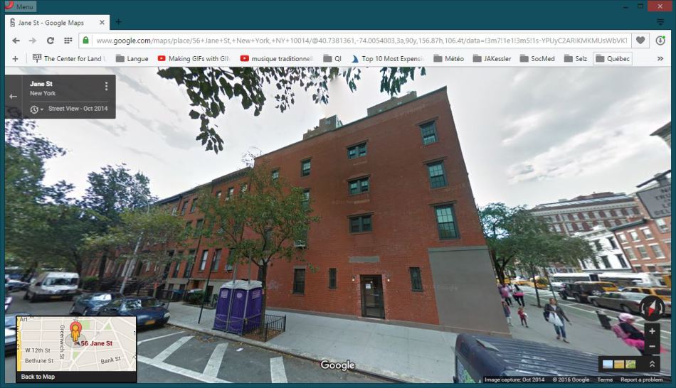 56 Jane Street Greenwich Village New York NY Summer 1995 - Summer 1996 Chemical Bank - Walked along Hudson to/fm work (Premonition: WTC) Bradshaw Smith