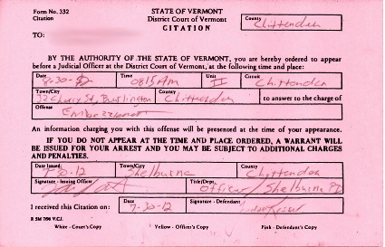 21 August 2013: It has been over a year now since Diane Olsen of the Days Inn, Shelburne Vemont, falsely accused me of and had be charged with embezzlement. It has been 9 months since the case was dismissed, “No Judgement”, dropped. And yet, this accusation still haunts me each and every time I apply for a job, cross the border to HOME, or, at the odd times, have a conversation with someone. Meanwhile, Diane Olsen has been living her useless, coniving life as if nothing ever transpired, unscathed, free to be mistreat and abuse others in her own fashion. Her selfishness, her arrogance, her stupidity has essentially ruined MY life. And not one person, in all this time, has ever come forward to offer any kind of help to me. I will remember this event long into Eternity.
