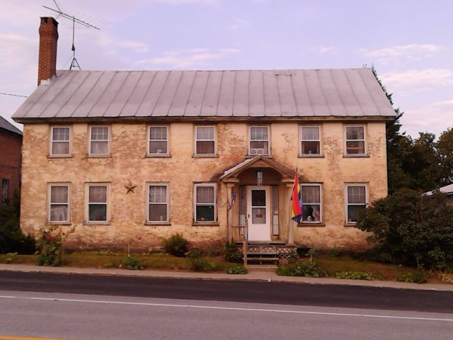 Sun.11.Aug: 7.50 Awake on a sunny Sunday morn. Tired. I thought it was… some week-day. Stupid. – 15:41 There’s a nice breeze coming in through the windows, mainly because my window-fan burned right the hell out today! Piece of shit! Bought it in Rockaway, used it one season there and put it into storage. Brought it up here. Got what? Just under 2 months out of it? Oh well. Just that much less to be concerned about. But the sun is miserably hot today. Hopefully it won’t warm the ground up enough to hold the heat to make it too hot in the coming days. But then again, it can’t get too cold either because I don’t have any cool-weather clothes here. Never “OK”. – Got a bit hornswaggled into “helping” with dinner preparations. Shucked the corn, mostly. And guess what is the main course tonight… Baked… HAM! So… guess who won’t be eating (much at all) again, tonight. Oh well. Doesn’t much matter one way or the other. – I need a shower. I need to Hoover the room again too. Bob took the door down this morning to sand it so it would close properly. It’s still the same. But there are paint chips on the floor now. And you know? I don’t care about that either. – I snuck up to the room just now. Not sure why. – But I got a box packed to send to Nancy. YAY! Something accomplished. Tomorrow I’ll swing finances to get it sent. There are items in this box that I’m looking forward to her getting. – 22.16 Another day, another Sunday… done. John came by for dinner again today. It’s a pleasure to see him. Actually, it’s a wonder. When the 5 of us sit around, having a beer, just shooting the shit, as it were, it’s the complete opposite of what the rest of the world would expect. 5 Gay men, sitting in t-shirts, shorts, jeans, work-boots… but not the kind that are bought in the high-end stores, regular “work” clothes that have been work for “work”. We joke, talk… talk about things like crops, cow shit, lawns, agriculture, trucks, auto repairs. It’s just SO completely the opposite of the “stereotype”… and it’s actually wonderful. It’s just a bunch of what could honestly be called “Red-necks”, comfy and cozy at home, in a tiny town, in a rural part of an agricultural border-state in the North Country. We talk about the Winter, the weather, the conditions of the rivers, who got hay this year and how they choose to bale it. And it is… comfortable. (And John actually handles Randy when he gets a bit on the “frisky” side, as he did this evening.) We sat out back for a while, as dinner cooked. (Dinner: Bob made blue-berry pie, a blue-berry “buckle”, and Randy went out back to get black raspberries which Bob added to another batch of blue-berries and made yet, another pie… baked ham, sweet potatoes, steamed squash and corn. Ah… but the blue-berries came direct from the bushes out back, as did the black raspberries. The squash and corn came from the local farms. And I’m pretty sure the sweet potatoes did as well. And, of course, the dinner talk was, along with the usual innuendo and such, about the sources of the food on the table… all local. “Country” folk at the table.) The others sat and had a drink. I played with the Frisbee with Dixie. Ellie joined when the Frisbee-playing changed to playing with a stick. So, 5 Gay men, sitting in the yard, by the barn, drinking and talking shit, playing with the “hounds”. Sunday evening… in Vermont. And it was a pure delight. – Dinner… I had the smallest bit of the roast, just to avoid comment. But the potato, squash and corn were really quite filling! And the pies were delicious (of course). And I did eat quite enough this evening. – After dinner, Lyle headed over to Highgate to a concert, given by friends of his. The rest of us stayed at the house, continued to talk about all sorts of things. John can spin yarns and tell the most insane jokes. And we enjoyed each-other’s company. – John left, Bob, Randy and I sat out on the front steps until Lyle came in. Then we all came into the house… Randy and I put the dishes into the machine, I washed the pots, cleaned the kitchen. Done. – But I never did get to take my shower again today. Imagine that. But I really didn’t do much to warrant one. (Imagine THAT!) – Tired now. But tired most all the time these days. Not depressed tired.Just tired… of so, so much. – As we sat out back, John mentioned that he rents a room in his house to a guy who’s never there. Bob said it would be nice to find somebody like that and rent them (him) the “Media Room”… since he’d pay the rent and never use the room. But then I over-heard Bob say: You know, it’s not about the money… it’s about being happy. (OK. We’ll see soon enough. But then, 2208 isn’t the beginning of a new month.) – Cloudy and cool tomorrow. Rain on Tuesday. – OH OH OH! We got into the talk about Diane Olsen and the Days Inn. John looked at me and said “You must really want a piece of her. I don’t know how you stand it!” and Bob reminded me of how his ex-wife has done the same to him with false charges of child neglect. It was 4 years ago… the case was thrown out of the courts… it still follows him. Honestly? This entire “Nation” is comprised of shit… useless shit. –