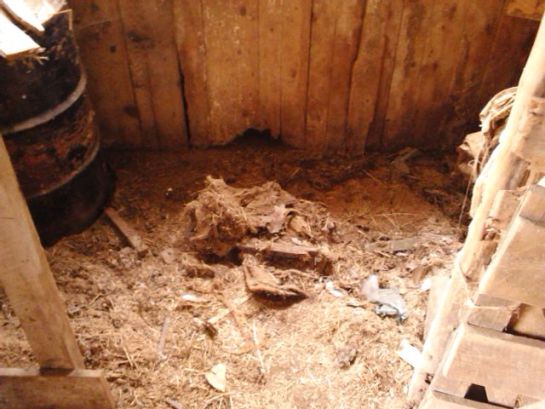 If the temperature now is only 1, and this is with the sun shining brightly, then the temperature over-night, being cooler, MUST have been MINUS. (I REALLY need to get my shit together and get ready for what’s to come at the end of this month… or before then… depending on when I get the “work” done.) – TIME TO GET TO THE BARN! The sun’s rising high enough to brighten it in there AND to put just the slightest touch of warmth to it. No time to waste. Oh! And today the clothes are clean! (Last evening I asked if it would be alright if I washed them. They had Friday’s ride in the rain, Saturday, Sunday and Monday’s yard and barn work on them. I got a puckered face and a nod. You know what? It isn’t even 8.00am, the sun hasn’t even had a chance to warm the morning air, and already I have a rock in the pit of my gut and I want to PUKE my colon right up through my nostrils. Lovely. BUT… IT’S ALL MY FAULT and as the day progresses, I will come to learn how and why. God will provide the answers… right after he pulls the white-hot steel shaft out of my bleeding arse. Amen.) – 21.55 The back of the barn (and I’m not good enough to hire at a paying job. Can’t be trusted. Or, as I recalled today, as Martin and EW put it, I’m too “flighty”. More like: Fuck him, he’s a total shit-arse moron).