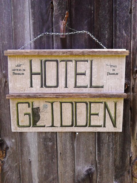 5 more days to the end of this month. But funny enough, last night Bob said something about taking a ride to Stowe to see the foliage and Lyle suggested that “the 4 of us” should do so on the week-end. “The week-end”; I’m watching the weather and figuring the logistics of going HOME. (To that point I keep thinking of a note to Pauline Marois: “You may have succeeded in stopping me from returning HOME to reside and LIVE, but you failed miserably at stopping me from coming HOME to die.”) – Oh well. The day is running along already. Lyle and Randy are still in bed. That miserably psychotic “cock-head spaniel”, Ellie, just HAD to start her barking shit as I returned to the room after all the work. But, in my heart, I AM aware of her past and that the problem is, more than likely, trauma and that she’s startled when somebody is moving about. And, in my heart, I understand that MORE than ANYbody will EVER realise. She and I have THAT in common. Now, if only I could figure out why Dixie has taken so closely to me. She follows me every-where and is SO attentive. Even last evening, when it was time to come back into the house after her evening “Frisbee”, Bob asked ME to get her to come into the house. Love? I don’t know. (I have pangs of guilt every time I think about her, and how, when I’m no longer here, she’ll have no-one to give her her play time.) – With this morning’s light, I have to get to the Hotel signs. They MUST be completed… as must Daisy’s garden sign… and there isn’t much time left. – Oh, and at some point in the day, probably this evening when Lyle and Bob are on errands, I have to cut my hair… and shave a bit. After all… even looking forward to laying on the ground… appearances. – 20.25 For some reason, I’ve been in “Tuesday” in my head and just now, when I saw that it’s actually Wednesday, it makes me physically sick to my stomach! WEDNESDAY! This week is going by too quickly! So too, this month has gone by entirely too quickly! – 23.48 and I’m still awake.7 degrees out there tonight. The windows in the room are a bit on the steamy/frosty side and there’s a distinct chill to the air – Well, as for the day? Imagine this: I got a HAIR-CUT in and a beard trim! Not too shoddy. Bob came to get Lyle at about noonish or just after and they went off on errands. I took the opportunity to have a 10z in the back barn and yes, I must say, it wasn’t quite long enough but it certainly was worth the time and effort. As it turned out, the timing was perfect… or almost just about. – So, since Randy and I were the only ones in the house, I next grabbed the Hoover and got to the carpet in “my” room. It needed it. Then did the hair-cut and beard trim. Randy wasn’t hungry, or so he said, and said that Bob and Lyle were going to eat out and that we should fix something for our-selves. I wanted to make the burgers from the real beef. But it’s frozen solid and cooking it from frozen would have murdered it. So, what I ended up doing was to put a burger bun and some cheese into a bowl of left-over cabbage soup and that’s what I had for “dinner”. (Plus a sandwich of baked potato and mayo, and for desert, chocolate syrup on whole wheat sandwich. Good food? Hardly! But something to eat, none-the-less.) Bob and Lyle returned JUST as I was drying my “dinner” dishes… early. – I went out for a while with Dixie and then up-stairs after a brief chat with Bob and Lyle. – I’ve been miserably tired all day and just can’t seem to kick it. So this evening, I took a 30 minute nap. WHY the fuck I’m still awake is beyond me. I’ve been shitting round with images for hours now and not producing anything. – Oh, I added the “What happens in….” to the Hotel sign, the wired them as a hanging pair of signs. Lyle wants “Franklin” added… in burnt orange with black trim. Not a problem, but I still have to finish Daisy’s sign and pack things and figure the logistics of how to get HOME this week-end… since this will be THE trip HOME. So much to do, and I’m too tired to do any of it. I just want to go to a corner of the yard, lay down and never get back up again. But, this isn’t HOME and I WILL be HOME! – Midnight. I’m going to “nap”. – SO BLOODY FUCKING HUNGRY!!!!! –