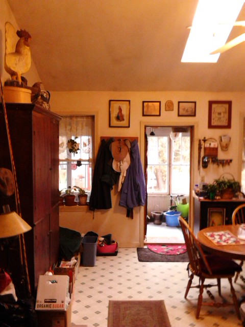 12.46 And I’m at Jacquie’s where I’ve been from since about 10.00 this morning! Fed Hallie, built a fire in the wood-stove because I brought the lap-top with so that I could get my list of passwords cleaned up! I NEEDED to do that! There are TOO MANY “ACCOUNTS” round and about and now, with the publishing back in swing… well. – So… Ms. Hallie’s been in the bed-room all morning whilst I’ve been at the kitchen table, typing away. But with this dreary day, and the 2nd of 3 loads of wash being done, I can catch up with ALL 23 pages of this thing and then get them posted to the on-line journal at last. My “life” has gone to HELL! But today I shall recover… – And I’ve a “LIST” of shit to do at this house: replacing the windows on the back porch, putting the heating wire/tape on the plumbing, re-stacking wood in the garage, and for BOTH houses there are pumpkins and corn stalks that need to be gotten rid of! THEN comes washing the kitchen here! MUCH to do. (BUT… this week, again, Jacquie put 100 into a card.. why? I don’t know… but there’s WORK to be done to EARN that!) – (1.48 on Saturday)