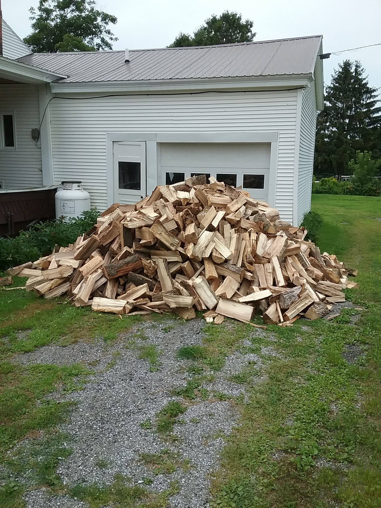AND SO, AT 12.12 (I HAVE PHOTOS TO JOURNAL) I TOOK THE FIRST PICTURE OF THE STACK OF FUCKING FIRE-WOOD THAT WAS DUMPED AT ABOUT 8.20 THIS MORNING, IN FRONT OF THE GARAGE. THE LAST PHOTO WAS TAKEN AT 17.41 WITH THE CHIPS CLEARED FROM IN FRONT OF THE GARAGE, THE LAWN MOWED (SEVERAL TIMES TO GET RID OF THE EXCESS CHIPS). I WORKED RIGHT THROUGH. FOLLOWED THAT WITH A “RICE AND 3-BEAN SALAD” FOR “MEAL”, FOLLOWED BY WASHING THE DISHES AND CLEANING THE FUCKING KITCHEN MESS. NEXT... HOOVER THE ROOM AND THE KITCHEN FLOORS. THEN... A SHOWER! PUT THE WORK CLOTHES IN THE WASHER AND HEADED TO THE STORE FOR ICE CREAM (ALL GONE) AND A BAG OF CRISPS FOR TONIGHT. AND NOW? ICE CREAM IS GONE, MIMOU GOT DINNER, THE CLOTHES ARE IN THE DRYER AND I'VE WATERED MY PLANTS (BECAUSE WE'RE JUST NOT GETTING ANY RAIN!!!).