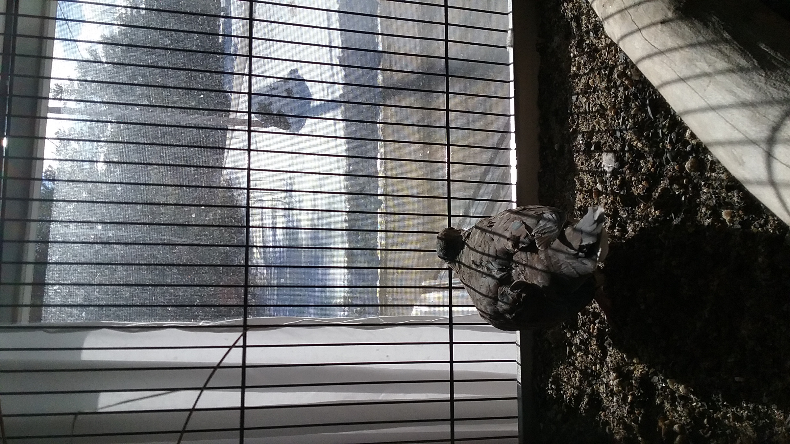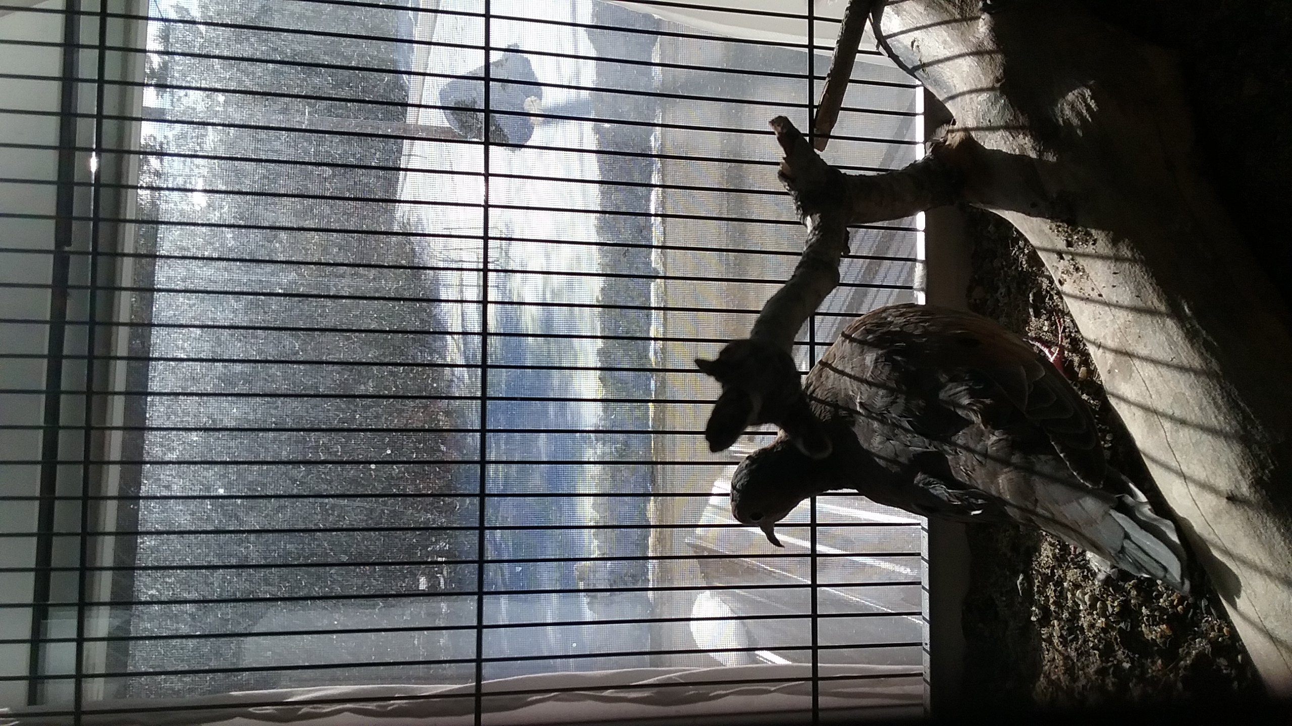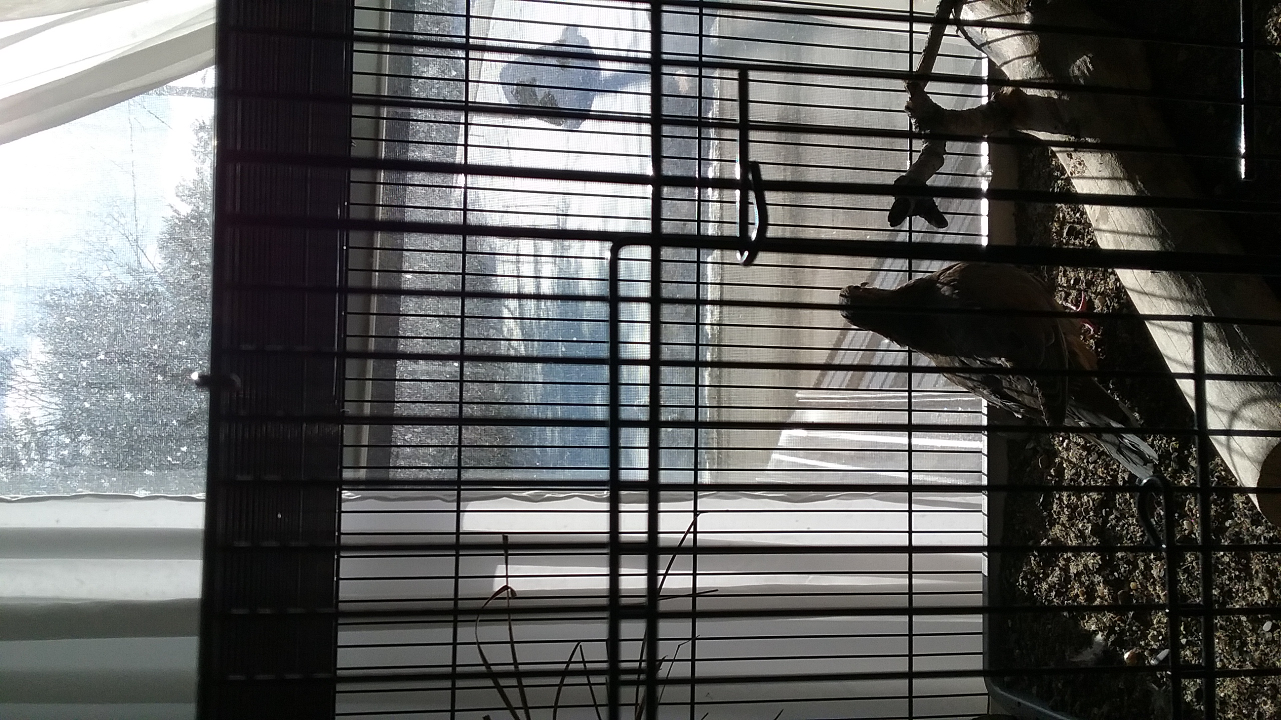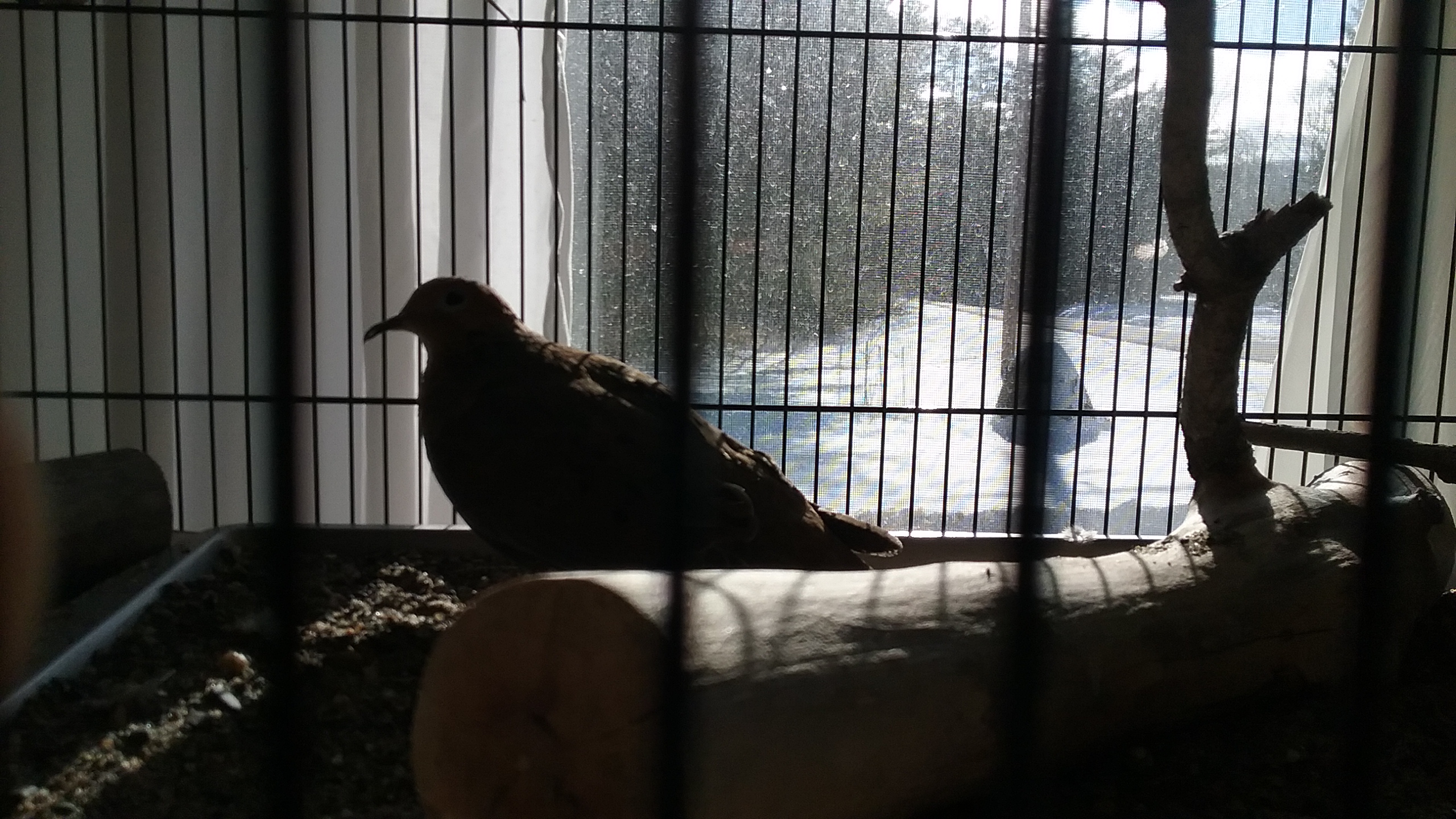 AND I MUST MENTION/NOTE: WHEN I CALL “YONAH”, SHE MOVES HER MOUTH, AS IF SHE'S SAYING SOMETHING! SHE RECOGNISES HER NAME! AND WHEN I SAY “I LOVE YOU”, SHE DOES THE SAME THING!!! YESTERDAY, SHE COO'ED WHILE I WAS IN WITH HER. AND TODAY, AFTER THE “CLEANING” SHE PERCHED, CALMLY, WHEN I WENT BACK IN TO CHAT WITH HER! IT'LL BE 3 MONTHS ON WEDNESDAY! I'M SO BLESSED. I DON'T KNOW WHY, BUT I CAN'T HELP BUT THINK OF WHAT GINA SAID “YOU NEED EACH-OTHER”. YES, I SUPPOSE WE DO.