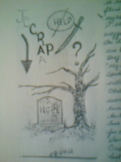 SAT.30. 7h45 IT’S RAINING THIS MORNING. EXPECTED TO RAIN ALL DAY. I WOULD HAVE BEEN OUT THERE LAST NIGHT, THIS MORNING. THIS IS STRANGE. BUT I’M NOT FORGETTING MY “OPTION”. – MEANWHILE… restless sleep last night. DID wash my sox this morning. Brushed my teeth too. Need to file my nails. Need to wash my clothes. Nothing can be done for 3 days now. A blessing and a curse. – I’m antsy. Want out. Right now the only reason I’m staying is because of the kindness of Marianne. – RAIN. ALL THOSE FAIR WEATHER DAYS AS I SLEPT THE BAKFORT. Image? – 11h40 Mary Beth from the Hosp. Soc. Svces. office came by this morning to ask questions. She’s completing the shelter application. A bit of news that comes as no surprise to me: When work comes and I take it, I leave here to go to work and I’m out, OUT of here. No coming back. And, it will, most likely be filed as “AMA”. No further responsibility. Completely on my own. Let’s face it, This situation is horrible right now, but where will you be going at night? – Now, come to find out, my room-mate’s housing is hanging by a thread! He’s on eviction from the Hammels! So, it looks like we’ve been slapped together by the fates, to, if nothing more or less, give some sort of support. I wish I had the energy to give support. But, no matter what, I figure I’ll provide something, somehow. it’s what I do. – 12h25 Jackson’s MD is in. They’re talking surgery and J. wants it done at Mt. Sinai. And he wants to be out of here by Monday. BUT he’s being treated for some infection (in the blood stream). Why am I noting this? I don’t know, really. What I’d like to do is have a cigarette, a walk, a breath of fresh air. Some freedom, liberty, dignity. What I need to do is carefully weigh the situation as it is, for what it is, what it has to offer and most seriously, weigh alternatives. It’s not easy now, but is this a gift? THE chance to stop the falling? Is it temporary relief? Is it a reprieve, a respite? Is it a moment to regroup, get strength to head back out there? I’ve always told my patients that, if they’ve spent their lives doing for and never allowing others to do for them, life can come along, slap them down, and here, in a hospital bed, is how they’re forced into taking time to relax. It’s difficult, but I’m trying to accept my own advice. Will I succeed? I don’t’ know. Will I try? Yes. If not for me, for Marianne. She’s taken a leap. I can’t throw away her efforts. – So, meanwhile, there’s going to be a psych eval coming! Oh! La! What fun! Let’s see what bias is brought into this session, what prejudice, what nonsense. I just keep in mind the fact that I most certainly can pick up a pen and write it all to a complete halt at any moment of my choosing. But, I’ll have to spend serious time considering the results. For now, lunch is done (13h10). Sasha brought it in, with a smile. “Hello my friend.” The good part of her addressing me the way she does is that she knows my situation and she’s treating me as a fellow human-being. It does me good. A semblance of my human dignity. – So, this is my 53rd birthday: in a hospital bed, homeless, booking into the shambles of a public shelter away from where I’d been so happy to have reached (Rockaway). Bouncing from one run-down shelter to another, on what? A daily basis? Yes, there’s a lot of serious thinking to be done. A LOT of SERIOUS thinking to be done and NOT a LOT of TIME in which to conclude. – I’ve got 4 cigarettes left. I’d truly luv to smoke one, at my leisure, but I can’t. It’s been, let’s see, almost 4 days since my last smoke. You know? I’ll chew half to celebrate my birthday. Then, perhaps, a nap. Then, more thinking, pondering… – Note: No calls from Penelope or Tommy. I left them on Tuesday afternoon. No word since. Nice to know I’m being thought of. – 17h32 The day is almost done. Dinner came and went. My last “Happy 53rd Birthday” note. The “birthday” is over. Jackson over-heard me asking for an emery board and called his wife to ask her to bring one from home. Then he apologized for eaves-dropping on me! Hey. Earlier, he needed 25 cents for his TV payment and I had it. I gave it. Why not? After dinner, he offered Entenmanns’s donuts. His wife (I think) is here. I should give them time together. They have each-other. – My jeans truly and seriously need to be washed. – I’m having my half cigarette. Just missing with saliva. I wish I could smoke just one. – I’ve been steady damp, sweating all day. I need to bathe. – 17h42 I had the phone on for 10 minutes. No signal but I get time and date. 3-bar charge. No messages. I very well could be dead. But I’m not. Not in a manner of speaking. – A thought came to mind earlier. Maybe it’s worth a jot here: My mom Loved her children. She worked hard to make sure they had the best of what she could give. She protected her children. Me? For as long as she could and for as long as she had to. Is it an injustice if I let the rest of the world destroy me? Must I survive because she did? – One thing I’m looking forward to is dumping a lot of the past into the lap of the psychiatrist coming for the consult. Maybe even ALL of it. I’m 53. I’ve been shoved into bring here. It’s time to get rid of the bags and see what happens. – Oddly ,I’m missing the dunes something awful! I’m actually home-sick for the tree. I’ve sketched it twice. I’m missing every bit of those days except the cold. If I could figure out how to dodge that, I know I’d go back. It’s interesting… I guess this is how the permanently homeless become that: You get it into your life, you learn, you adjust, you fall into it, it becomes you, you become it. The mystery and intrigue are gone. You see that you CAN live in basics and you see that it has its beauty and it’s not so horrible. Meanwhile, here you lie, on this bed, 24 hours, no breeze, no su