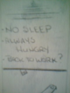 SUN.31. 9h19 It was a miserable night. The woman next door, the moaner, was non-stop. I don’t’ hold it against her. The poor sweet-heart is tangled in a horrible fashion and must be in pain. But her pain management is poorly unsatisfactory. – Jackson too, was having a rough night, restless. It was a difficult night to keep my calm. Then, at about 4h, the nurse comes in to put a new, blue ID band on my wrist as I slept! – But right now, I’m actually SHOWERED! Breakfast was a joke. I’m tired. The weather is just gorgeous. I’m exhausted. – 1703 Dinner’s done. I’ve been in here 5 days and I still look forward to a cigarette! FIVE bloody days and I still want a smoke. Ah well. I’m showered, in hot water, soap, body wash. Showered! Yay! Arm pits are already a little in need of another wash. But it’s good to feel clean. And J’s wife brought the emery boards, he gave me 6. I used one and MY NAILS ARE DONE!!! HANDS AND TOES!!! All that’s left between me and total humanity is hair and beard. – The jeans are taking a urine odour. They need to be washed VERY SOON. – Meanwhile they came in to test for PPD! I refused. Brenda, the Nurse, runs a Home Care Agency and understood why I refused. I know it’s for the shelter referral but enough is enough! – 19h50 I’d no sooner noted that when I had to move my bowels. First time today. No sooner going and they’re yelling for me. Chest X-ray! It took me a moment to wipe and when I came out of the loo, nobody was waiting. Moments later, the Tech and machine arrive. I told the Tech I’d had an X-ray on Wed. You know they don’t care. They’re programmed only to respond to the bigger voice. Mine doesn’t matter. So we take another X-ray, In the bed. Off goes the Tech. Moments later? I need to go down to X-ray. They didn’t get enough on the shot. So? So I figure this will take an eternity. I’ll lie down. I did. That was during day-light hours. It’s dark now. And I have to note here, along with all else: Hospitals are noisy and mostly inhuman and inconsiderate. I’ve got Roomie here, slamming doors and windows. I’ve got NA’s and the likes, in the halls, yelling to one another. TV blasting. Vocalisations simply for the purpose of making noise. Dropping crap in waste bins. Noise… for the sake of noise. No reason. No purpose. It’s difficult to keep in mind that it’s not intentional. It’s even more difficult to accept inconsideration. It becomes almost impossible to simply get up and go. But, the truth of all is this is in what I’ve heard and been told and have come to know actually is the truth of the situation: I’ve spent my life doing for others, I’ve worked and worked and worked no matter what. Even volunteering. I’ve managed to not be idle. I’ve worked and paid into a system of taxation that’s failed me. This is as good as it will get for a while. What I need to do is learn to use this situation, this condition, to the best possible opportunity. It’s not that I have to be awake at a certain hour. I don’t’ have to be some-where at a ceratin time. I can actually sleep on and off, nap when-ever. In return, I have this bed and no concern about weather. Food? Yes. The quantity is diminishing and I spend every waking hour hungry. I figure they send only the absolute minimum required caloric intake to keep me from breaking down ill. It’s painful. But, I need to hold on. Why? Why not? Playing this to the end will be interesting. And it’s not a public shelter. Yes, I’m sure the staff will begin to wonder what the fk I’m doing here. I’m certain some already know. But, as I say… it’s not a city shelter. All I need to do is save what’s at the hotel. If that goes, I go. So, there’s always the “out”. – So, 20h44 and I’m still waiting to go to X-ray. The floor is calming down. Ch.13 on TV. I’ve had to pee since I started writing. – 21h33 Went to pee. Haven’t been to X-ray. Checked the phone for messages. NOTHING. NONE. So much for RAA. Right? I’m thinking that if I last through this, maybe I could go to Louisiana after Hurricane Gustav. But bottom line for now, for the night? I’M SO HUNGRY THAT I’M ACTUALLY IN PHYSICAL PAIN! MUSCLES. HEAD. EVERYTHING! There’s an idiot out in the hall making sneaker noises. A nurse, a group of staff, doing the chat-thing. Jackson’s getting his meds. Hopefully, pain included. Hopefully everyone entitled will get their meds. The house is calm at the moment. Jackson’s restless, closing windows and such. Well, I’ll hope.