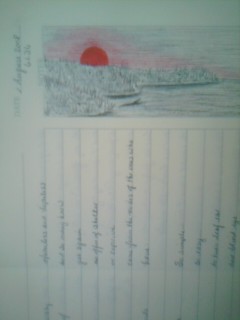 SUN.17:Woke a few times during the night. I remember doing the same thing many times through my life. Nerves. Fright. Terror. Depression. I don’t like it but it’s my existence. – But I got off my table at approximately 6h and began cleaning the coffee maker. FILTHY! Grounds in the works and all. I’m just now watching the first pot of coffee coming through. Oh well. I’m not other-wise occupied. Mopped the floor down twice as best I can. I’ve got terrible cramps this morning. It’s most fortunate I have access to the loo! I’m in dire need. – Yet, the sun is rising over a bucolic Ft. Tilden and into a sky of magnificent blue. Coffee’s on. Fresh-brewed. 2 cigarettes left. Looks like a great day to go to the beach and die. Go, whilst the world is at peace. It’s a comfort to me to know I have that choice. – Haven’t brushed my teeth since Friday morning. Rinsed with hot salt water though. I wonder how long these clothes I’m wearing will hold. I wonder where all my other clothes are. Death on the beach. We’ll see. The choice is there. I have choices. – 8h53 still alone. Allergies? Cold? Stress? Congested. Chest and nose. Just not feeling too well. Can’t afford sickness. Unless it’s my message: which choice to take. – 20h03 in the library, T6, at the desk… Penelope arrived about 10h. I was relieved to see her for many reasons, not least of all, that I would have had to explain my presence here and had she not come, ran the risk of being locked out. As it went, she spent the better part of her day cleaning a fridge. I was her “company”. I spent most of the day feeling miserable. Cold? Flu? Allergies? Exhaustion? All of the above, no doubt. (Even now, I’m sneezing. Nose dripping. Eyes all water! Feverish. Who knows?) She wanted (wants) me to ask Geoff for permission to stay here and I agree. He came by briefly. Feeling and looking ill. Was supposed to attend a wedding (on the beach) for one of the teachers from the Summer programme but was too sick. I didn’t mention staying here because of his illness. P. agreed it was best not to right now. But, she told me of a woman who took residence on the porch of T7 without any permission. It presented a terrible problemme for everybody. I assured her I’d do all possible to avoid all troubles. – This evening I went to the wedding with P. Felt poorly dressed (jeans, T-shirt, cord.shirt, flip flops). Went to the reception at the picnic area here. Beautiful! Traditional Korean. Plenty of food. I ate well. Hopefully it will all settle well in my stomach. – P. and I came back to T6. She gave me cigarettes for the night, suggested I have access to the library to read if I’d like, said she doubts anyone will come round for any reason tonight. Even mentioned turning on a light and the radio! I said I feel best not drawing ANY attention here. She agreed. – It’s 20h20. 25,5 degrees. I could use a shower but the one here is cold only. NOPE! NEED to brush my teeth and will soon need to shave. But right now, the day is finished and there’s nothing I can do about anything until tomorrow so I just need to do what must be done to feel well enough to attack a Monday. I’d like to hear music, sketch, take a walk, WASH MY CLOTHES, BRUSH MY TEETH, settle in, watch TV. But (my stomach is bubbling!) I’ll be happy if I can simply sleep through the night and wake trouble-free in the morning. – 20h35 Cleaned my teeth with a ScotchBrite pad! Feeling cleaner! I think there’s a full moon tonight. Beautiful out there over the Fort. But I just heard a car door close out front!